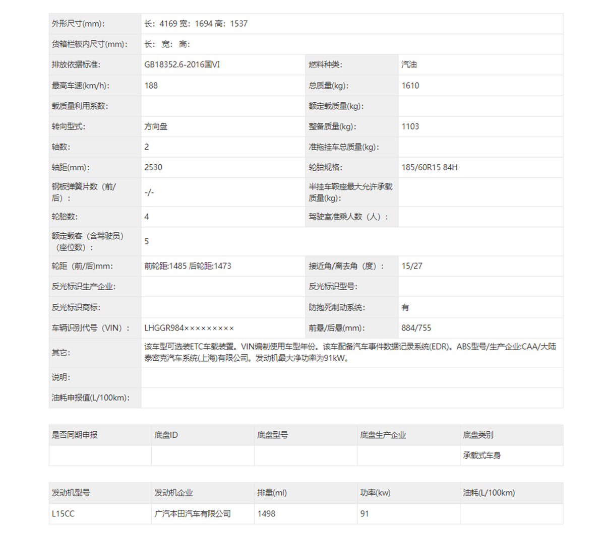动力配置部分,根据此前的申报信息显示,新款飞度将会继续搭载代号为L15CC的1.5L自然吸气发动机,最大功率为91千瓦,最高车速188公里/小时,传动系统匹配CVT无级变速箱。